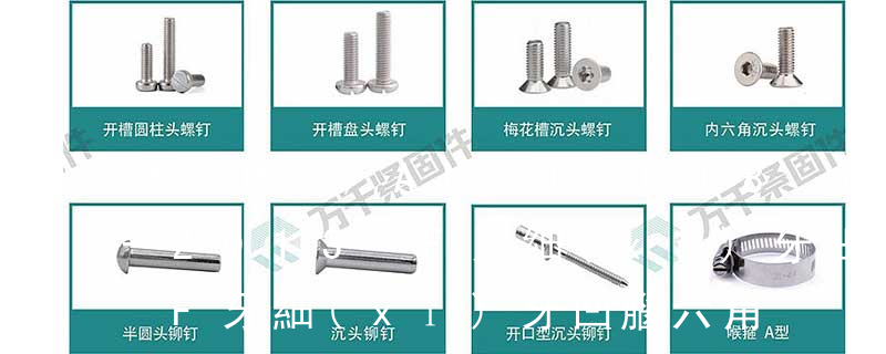 (鐵板牙自攻螺絲) B-2: Plastic Tapping Screw. (塑膠用,自攻螺絲) C: Wooden Screw : 木工螺絲 D: Drywall Screw :水泥墻螺絲 E: Self Drilling Screws鉆尾螺絲(不銹鋼鉆尾螺絲,復(fù)合材料鉆尾螺絲) F:膨脹螺絲,四片膨脹螺絲又